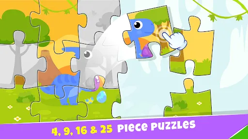 4, 9, 16 & 25 PIECE PUZZLES AND TODDLER DINOSAUR GAMES