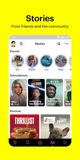 • Snapchat opens right to the Camera — just tap to take a photo, or press and hold for video.