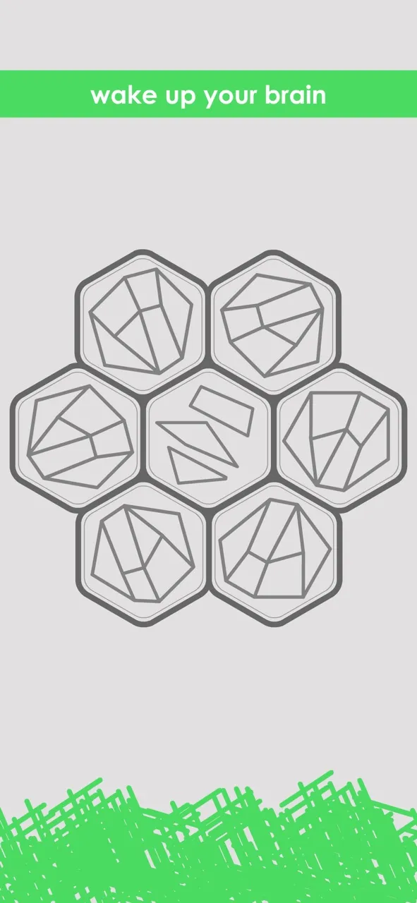 hidden shapes is a spatial ability puzzle game. There is no time limit, move limit and points in the game. You just need to find the shape on the centre which is hidden in one of the six hexagons.