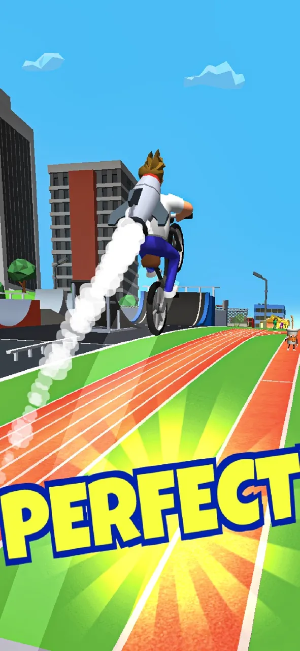 Tap to speed up your BMX and jump off the high ramp as far as you can go. Use the jetpack to boost the jump and cover more distance! The further you travel, the more rewards you get!