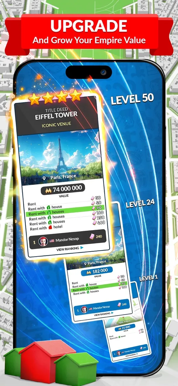 Monopoly World – Buy Local Properties is a one-of-a-kind mobile game that combines the iconic fun of Monopoly with the real world. Using GPS technology and AR maps, your city becomes a giant game board, and the buildings around you — from small local shops and cozy cafés to restaurants, office towers, hotels, and landmarks — turn into virtual properties you can buy, upgrade, rent out, and trade with other players. Every step, every walk, and every bit of physical activity becomes an opportunity to earn in-game currency to invest. It’s a blend of city exploration, fitness, and economic strategy that makes you feel like you truly own a part of your city.