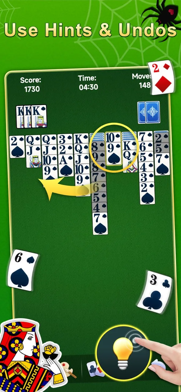 Spider Solitaire challenges you to stack all cards of each suit in descending order to solve the puzzle. Try it now to earn points, climb the leaderboard and come out on top as the best Spider Solitaire master.