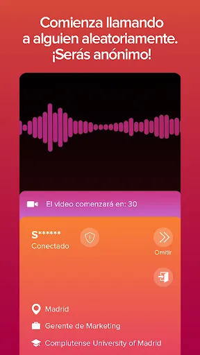 Empieza la llamada. Ambas partes son 100% anónimas. Coinciden. Chatean.