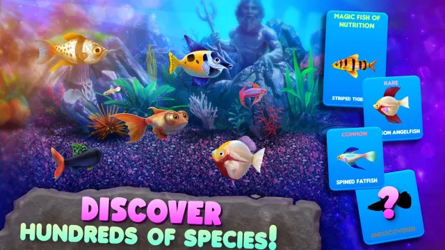 Just like a real world, this one will be changing and growing along with the families of pet fish you collect, breed and care for in your game! Start with just a few eggs, and before you know it you'll be taking care of Koi, Catfish, Groupers and even Sharks! There are plenty of fish in the sea!
