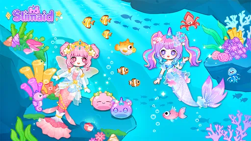Selamat datang di dunia putri duyung yang ajaib dan memikat, di mana kamu bisa mengenakan pakaian indah pada putri duyungmu, memasak makan malam yang lezat, berbelanja, menjelajahi istana, dan mengunjungi gua putri duyung! Jelajahi dunia bawah laut eksotis dan menarik serta ciptakan cerita dunia bawah lautmu sendiri!