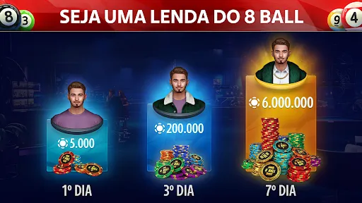 • EVENTOS DIÁRIOS – Participe de eventos jogando sinuca todos os dias! Receba recompensas temáticas únicas e exiba-as nas mesas de sinuca!