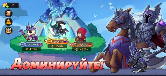 Отдыхайте благодаря автоматическому сбору предметов. Повышение уровня героев никогда не было таким простым!