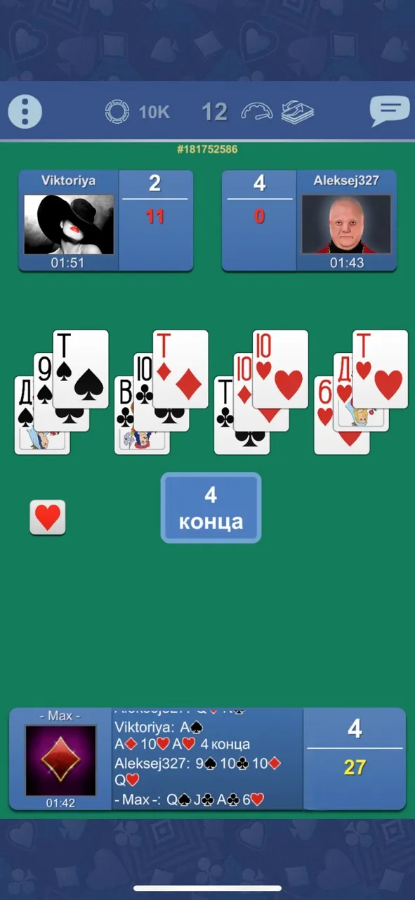 - Игра до 6-ти, 8-ми и до 12-ти очков (полная игра)