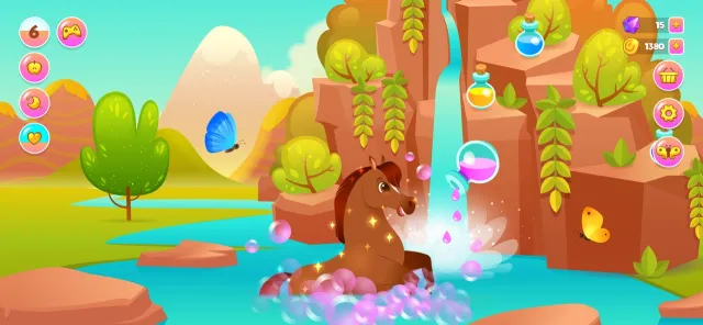 Кормите своего питомца, укладывайте его спать, следите за его здоровьем. Купайте своего пони под водопадом или в озере. Чтобы ваш пони хорошо высыпался, вовремя заводите его в конюшню и выключайте солнце.