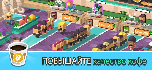 Станьте крупнейшим владельцем кофеен! Cоздайте и управляйте собственной кофейной империей в idle-игре на кофеине! Совершенствуйте свои кофейные рецепты, усиляйте менеджеров и автоматизируйте процесс!