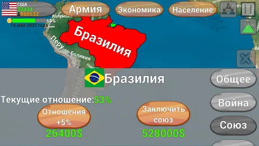 Захват Мира - это игра про колонизацию и захват других стран. Вы можете выбрать любую страну и улучшать её экономику, покупать улучшения для своей армии, исследовать новые методы введения боя. В игре иногда происходят случайные события которые нужно решать, население вашей страны может созывать мятежи и митинги от которых нужно защищаться. Вы так же можете выбирать идеологию вашей страны, увеличивать рост населения страны, менять налоги и многое другое! Игра часто обновляется и не даст вам заскучать