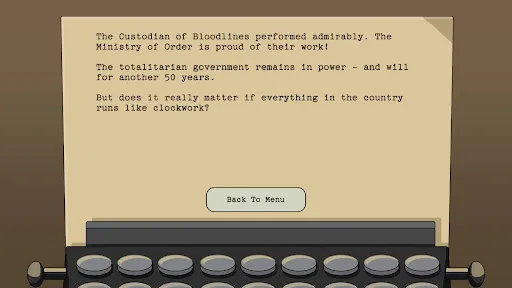 Вас направили в родильное отделение в тоталитарном государстве 1920-х годов. Воссоединяйте новорожденных с их законными родителями, используя упрощенную генетическую головоломку — ошибки не допускаются. Подчиняйтесь режиму, присоединяйтесь к тайному заговору или проложите свой собственный путь.