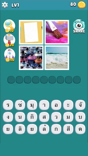 ใบ้คำไทย เกมภาษาไทยแนวปริศนาภาพ ถอดรหัสจากภาพและตอบคำถามให้ถูกต้อง มียากและง่าย ภาพ 4 ภาพไข้ปริศนา ออกมาเป็นตัวอักษรให้เรียงคำตอบ