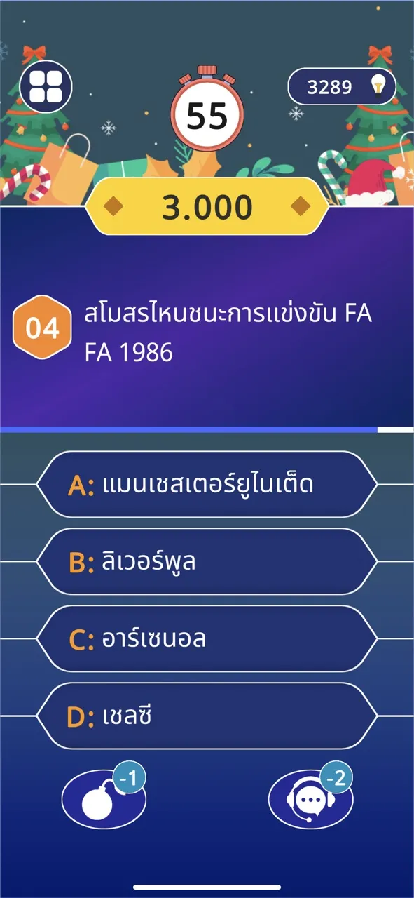 เราจะให้คำถามและคำตอบสี่ข้อ A, B, C และ D; ภายใน 60 วินาที คุณต้องเลือกคำตอบที่ถูกต้อง