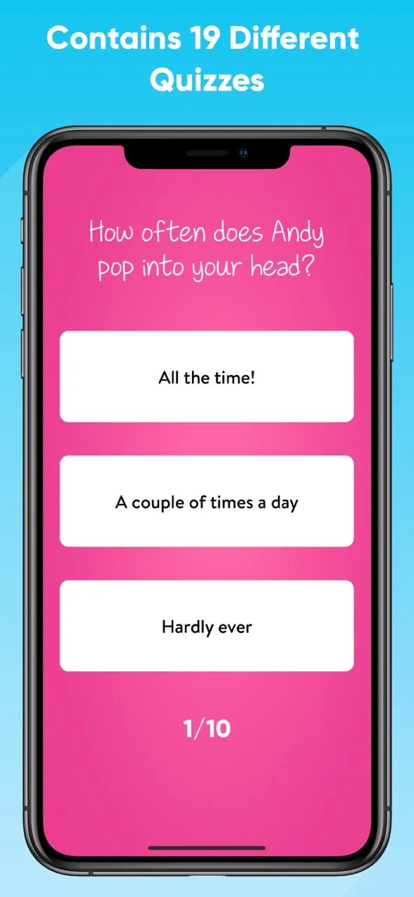 Answer ten questions and our unique algorithm will calculate the love compatibility as a percentage. There's a total of 33 different love test quizzes to try out.