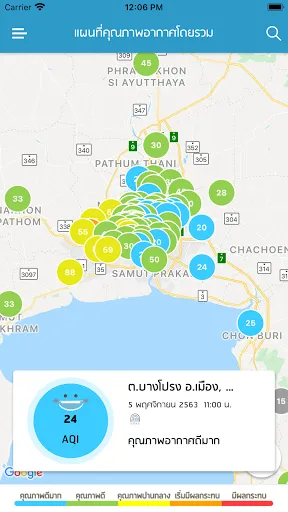 แอพพลิเคชั่นรายงานดัชนีคุณภาพอากาศของประเทศไทย โดยรายงานข้อมูลรายชั่วโมง(สำหรับบางสถานี) และข้อมูลรายวัน กราฟคุณภาพอากาศย้อนหลัง 7 วัน พร้อมแผนที่แสดงโดยเป็นข้อมูลจากสถานีตรวจวัดของกรมควบคุมมลพิษครอบคลุมพื้นที่ทั่วประเทศ เพื่อเป็นข้อมูลเผยแพร่แก่ประชาชนทั่วไป โดยเฉพาะในช่วงที่เป็นสถานการณ์วิกฤติหมอกควันในพื้นที่ภาคเหนือและภาคใต้ของประเทศ