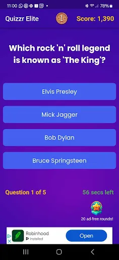 Quizzr Elite is a next generation trivia game that features questions, answers and "punny" quips generated by Generative AI. Don't worry - we also verify that questions and answers are correct, not repeated, and appropriate for all audiences. After each round of questions, players see how they how did in terms of total points, time elapsed, and bonus points versus other players on the very same questions. As users progress through the game, they earn point level badges. Lastly, users can even "Learn more" about the topic that they just saw! Elevate your knowledge and master the game - Quizzr Elite is where intellect meets entertainment, and trivia takes flight!