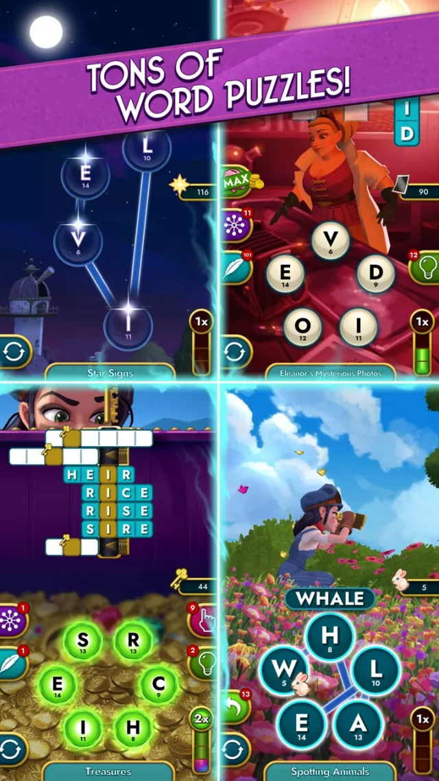 Play thousands of unique crossword levels, find hidden words, discover new daily challenges and combine letters into words to progress in the story. Who knows, maybe you will pick up a new word or two and expand your English vocabulary!
